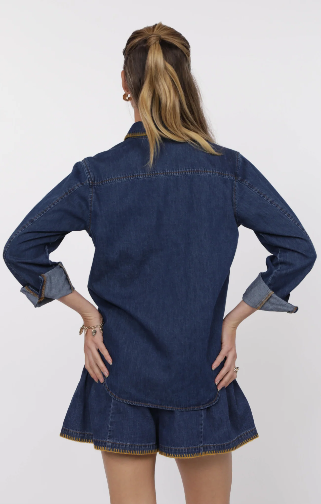 Magnolia Blanket Stitch Denim Shirt