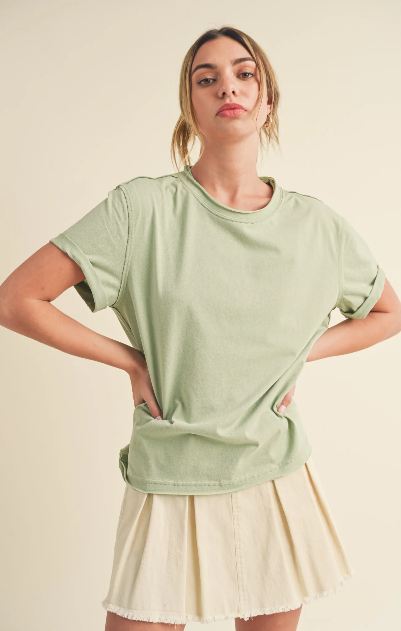 Mali baby tee effortlessly blending comfort and style, the exposed seams add a touch of modern edge to this classic essential. Perfect for a relaxed yet fashion-forward look.